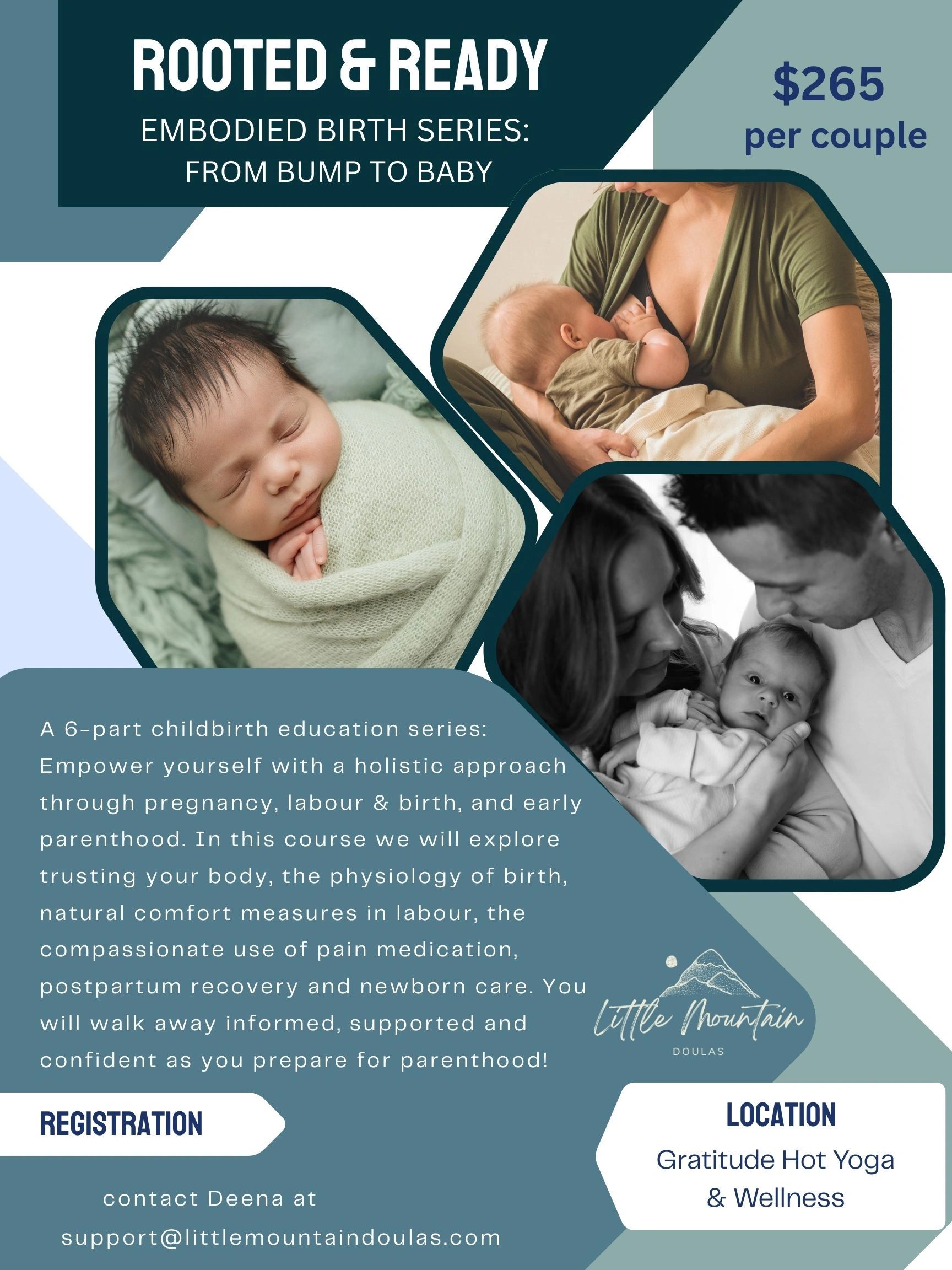 These classes are not “outcome focused”. The path that each birth takes, looks different to every family. We will explore what is important to you in your own personal journey . We focus on a holistic approach— preparing the mind, body, and spirit for this beautiful rite of passage — so you feel grounded and supported. As well as  partner involvement, ensuring they feel confident in supporting the birthing mother every step of the way. Every question, concern, or “what if” is welcome here—we’ll explore what matters most to you!